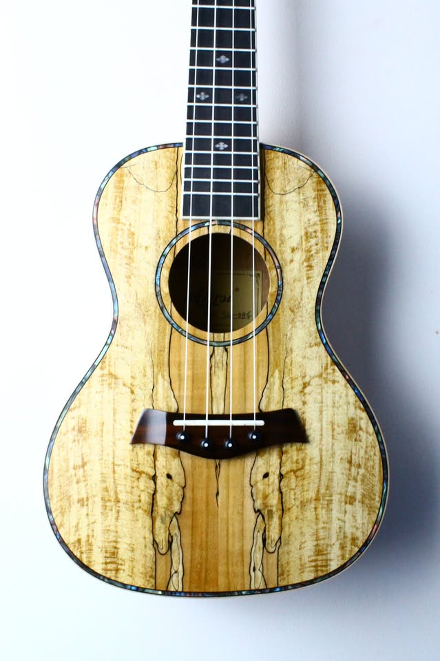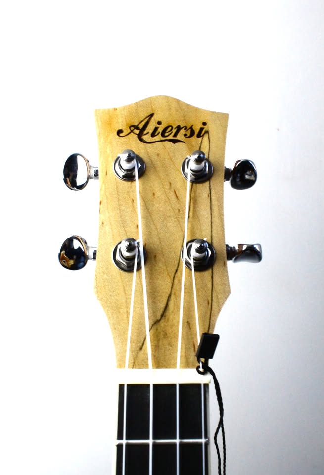 Finale Guitar has been partnered with Chinese brand Aiersi since way back in 2019. We tried a whole range of smaller Chinese manufacturers and found Aiersi’s instruments to be consistently well built, good looking and very reasonably priced, so we’re very proud to continue to offer their beautifully made range of ukuleles! The SU084 is a clear and punchy sounding concert ukulele which really cuts through well in a group. It has an all-maple body with a really beautiful spalted grain pattern, framed with attractive faux abalone binding which looks beautiful when it catches the light. This is paired with a mahogany neck with attractive cream coloured binding and very clear front and side fretboard markers so you won’t get lost as you move up the neck.
