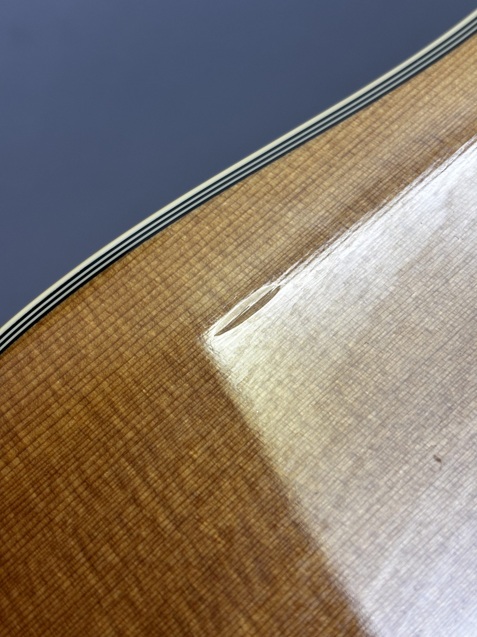 This guitar has been professionally set up and restrung with Ernie Ball Earthwood Phosphor Bronze strings (.12-.54). It is in very good condition aside from a small lacquer chip to the front, some minor scuffs on the binding and some very small chips to the headstock.