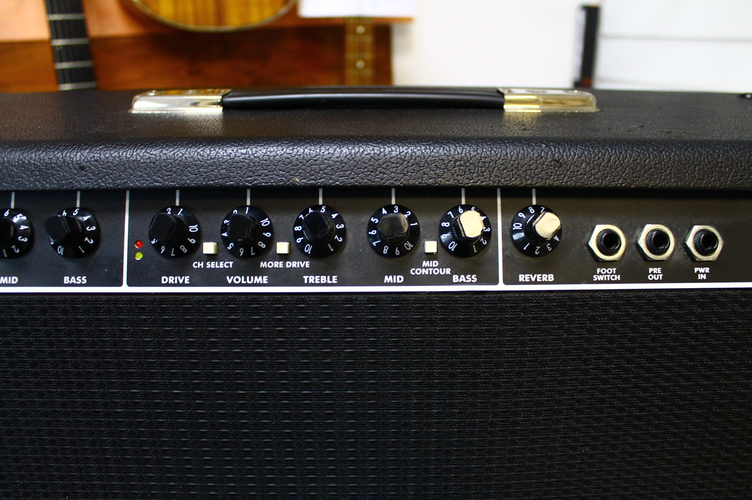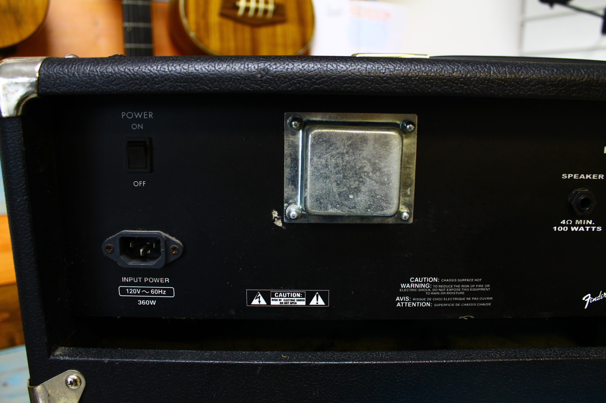 Fender’s FM100H is a great sounding and lightweight 100W solid state amp head, with clean, drive and “more drive” channels and built-in spring reverb. It has both passive and active guitar inputs. Both the Clean and Drive/More Drive channels have their own dedicated three band EQs, allowing precision tone tweaking. There’s also a really handy mid scooping contour switch which allows you to hollow out the drive channel for metal/high gain tones. A standard dual channel footswitch can be used for channel switching and activating “more drive”. This can come in really handy as a solo boost option without the need for extra boost pedals. On the back panel you’ll find “Pre out” and “PWR in” which can be used as an effects loop, to connect an extra amp or for direct recording. Please note that this is an American amplifier, designed to run on 120V power. We will supply it with a voltage transformer allowing you to use it with standard British plug sockets.