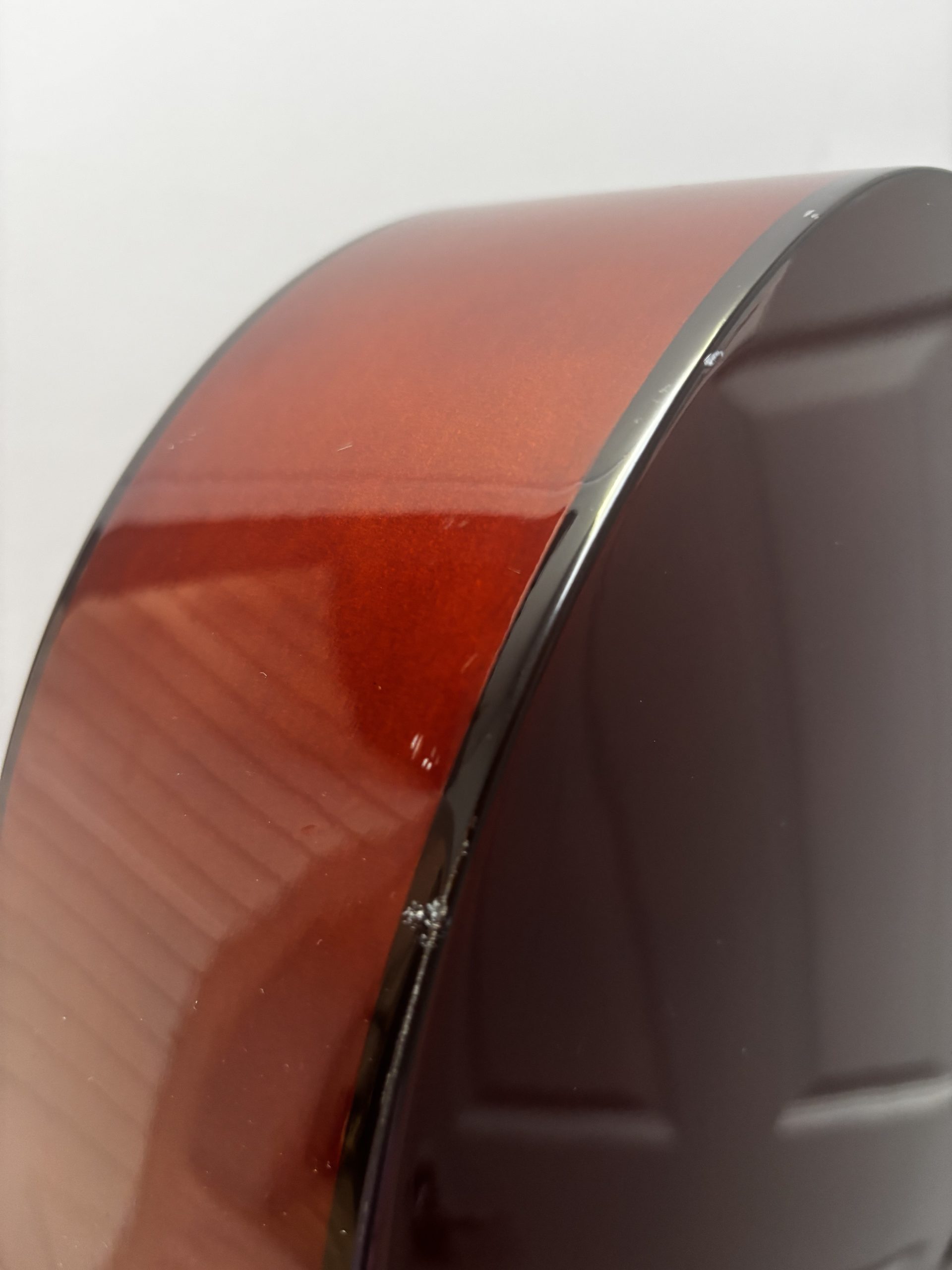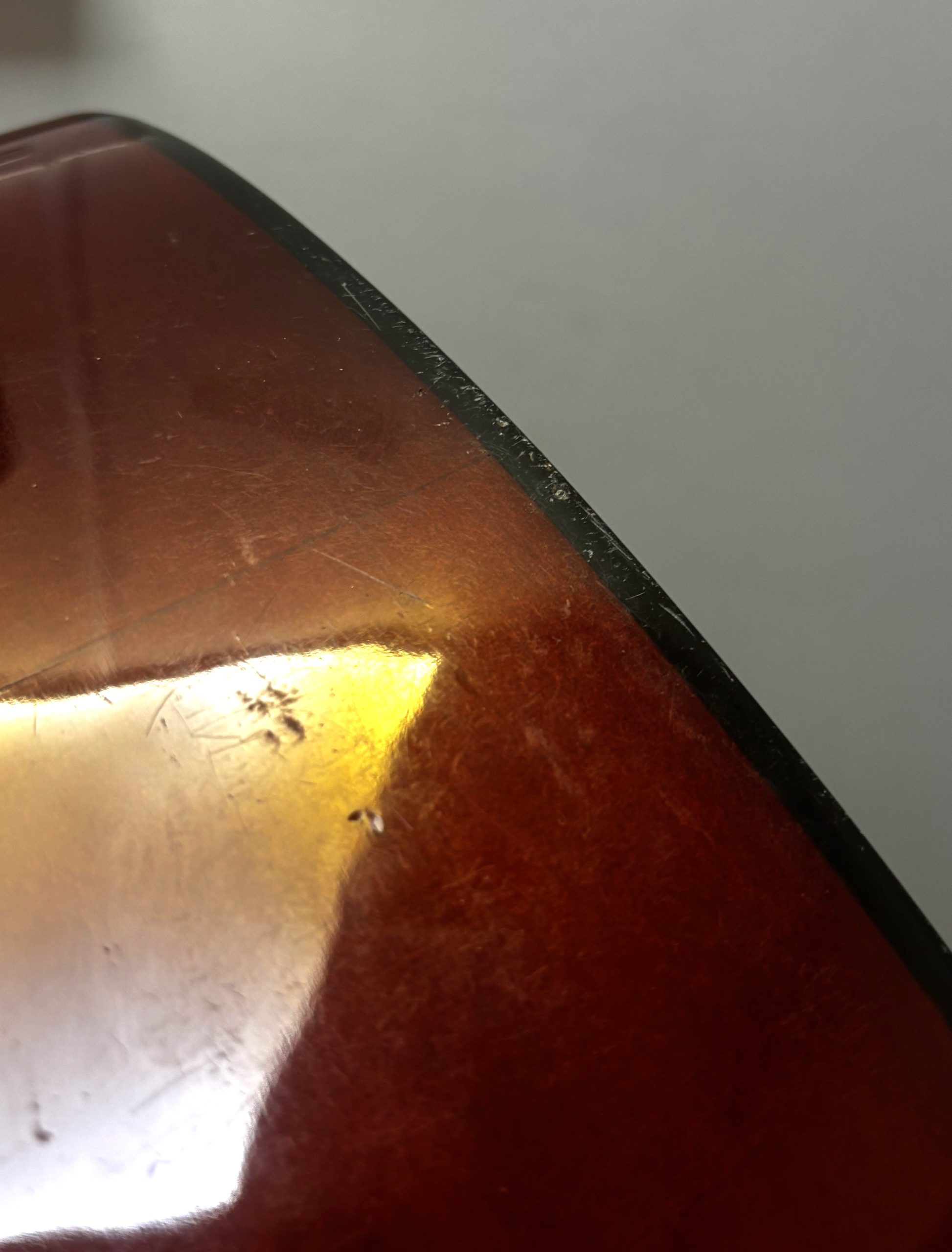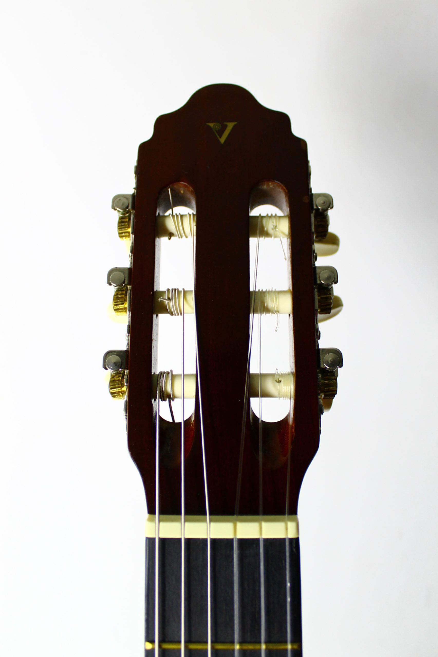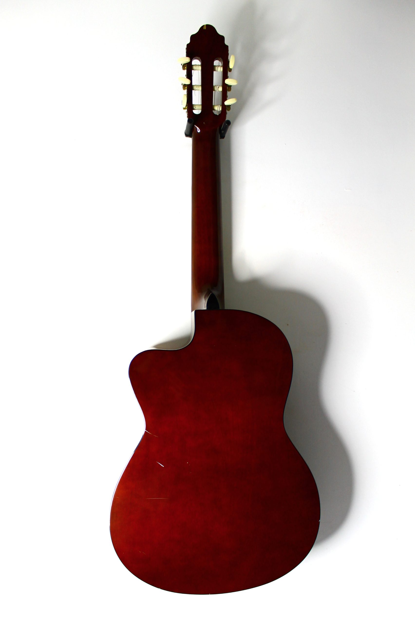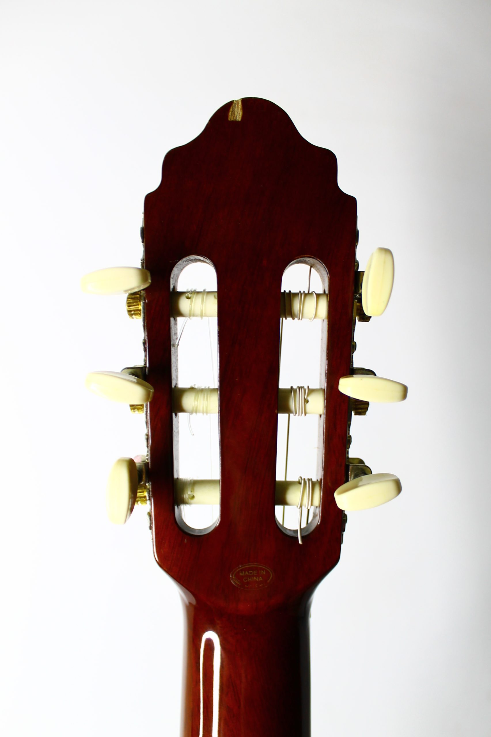 This well priced electro-classical guitar is in very good condition aside from some scratches and white marks to the back and side of the body and a large chip to the headstock which is shown in the closeup photographs.
